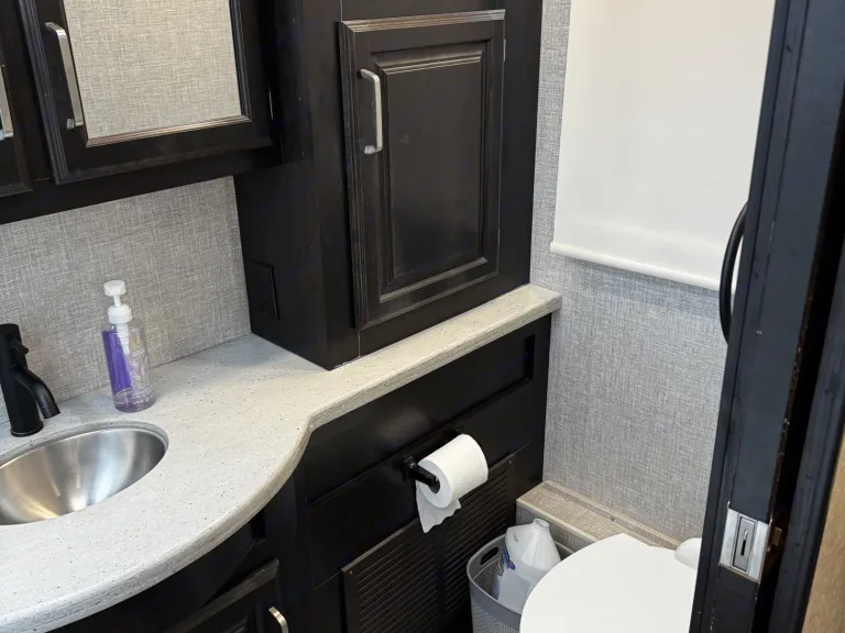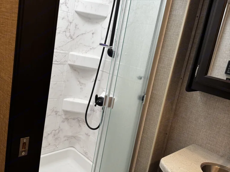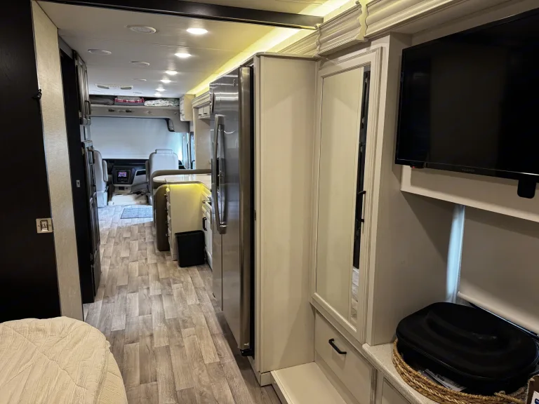An amazing coach! Loaded with 2 air conditioners, an LED fireplace, outside TV, 2 bathrooms, and more. Fully upgraded suspension makes it a smooth ride for all passengers. Delivery subject to availability.
