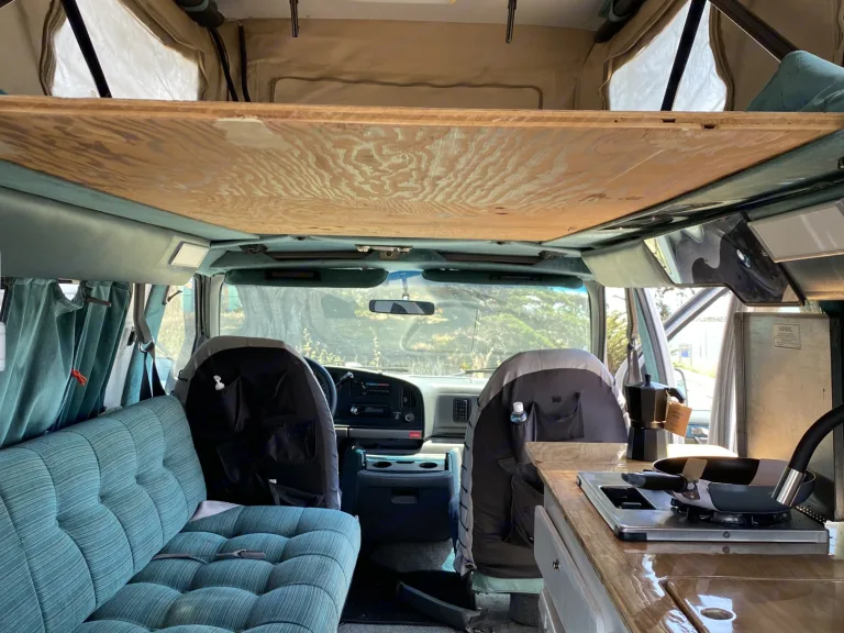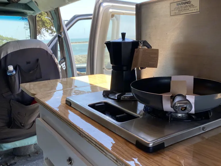 Sharptooth, a van that can fit into a regular parking spot, was actually named by my 2yr old son, and is now ready for others to enjoy. Owned and well-maintained for 7yrs, this sports mobile is newly remodeled with the basics. Stovetop, hideaway 42g cooler, and enough closet space for a family. Sleeps 4 comfortably, with the pop up camper. Sofa extends into bed. Seats 5. 2 house batteries will keep you Off grid for 2-5 days along with 15 gallon water tank and 10 gallon propane built into the frame of the camper, 5x 110v outlets also USB friendly powered by 2x 200w solar panels. Sink and outdoor-shower ready. Portable toilet available upon request. For RV sites, there are external plug-in and water hook-up. If you don't mind the old school feeling of van life, then this is the way to go.What's includedAll cookware and tableware is included in the rental.