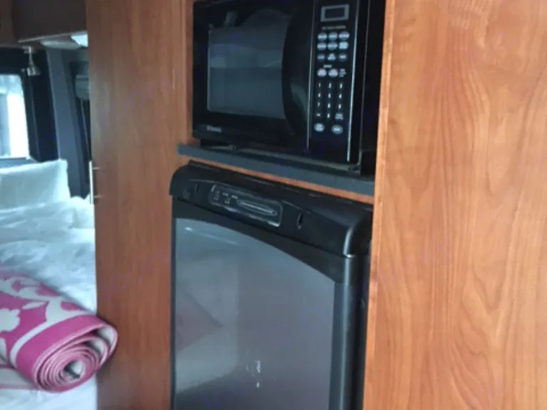 Queen bed, mattress topper, closet space, stove top, fridge, indoor and outdoor heated shower, solar panels for off grid camping , awning, rug