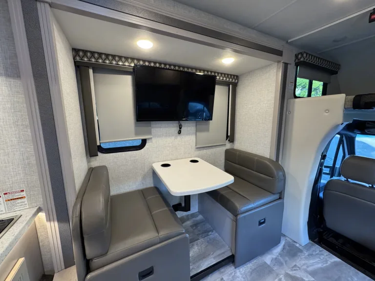 This Quantum Sprinter RV is an absolute pleasure. Built on the Mercedes-Benz® Sprinter RV Chassis, you’ll enjoy every mile along the way. Powered by the V-6 diesel engine, you can trust it to safely transport your loved ones and the trailer attached to the 5,000-pound hitch. Turn on cruise control and enjoy.Experience Luxury Behind the Wheel. A versatile Class C RV with high-end décor and finishes. With everything you need that make living on the road easy, including a fully-equipped kitchen, bathroom, living and sleeping areas.You’ll always feel at home while on the road. Walk up to your home on wheels and enjoy the safety and convenience of the keyless entry system. With a touchscreen dash radio that’s SiriusXM® ready, you’ll be able to listen to your favorite road trip playlist or discover new sounds in the city. The modern dash also doubles as a backup monitor that makes parking your Mercedes motorhome at the campground a breeze.The interior design fits everyday style. The floor plan has residential vinyl flooring that’s easy to clean. Both the custom cabinetry feature nickel-finish hardware and provide ample space for camping must-haves.Spacious Living Area. You’ve been on your feet hiking through the rough terrain, and there’s no better way to relax than on the theater seating. Kick your feet up on the footrests and put your favorite comedy special on the 39-inch TV. Rest on the sofa or quickly convert it into a bed for a post-adventure nap.Entertaining in Style. Laugh over a plate of your family’s famous recipe at the large Dream Dinette® and enjoy a movie on the 32-inch TV. Have an intimate dinner for two in the dinette booth. The RV comes standard with an Hdmi video distribution box and is cable TV-ready, so there’s no sacrificing entertainment on the road.The kitchen is the perfect recipe for a lovely evening: a motorhome made to fit you, friends, and family, storage space, designer look and efficiently using every inch for your convenience. What's included2x camp chairs