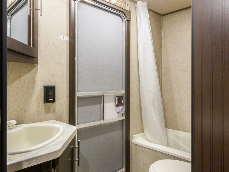 Stay Fresh! Full size bathroom with a large shower accessible via main living area for everyone as well as with its own exterior entrance. Outdoor shower hose also available to rinse off.