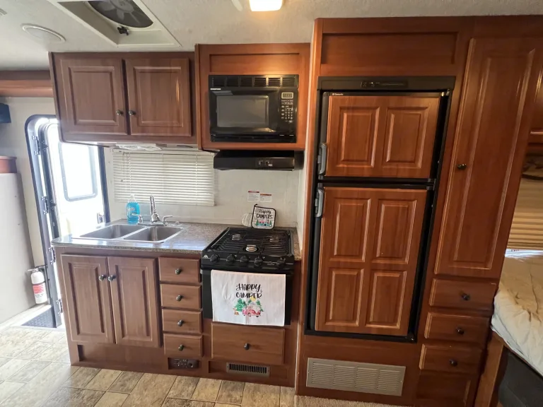 Ready for the ultimate getaway? The Road Warrior is a clean, comfortable, and well-loved motorhome designed for adventure seekers. With enough room to sleep four, you can hit the road with family or friends for an unforgettable journey. Stocked for fun, this rig comes with board games, cards, and outdoor activities—including pickleball and cornhole—making it easy to spark some friendly competition at the campground! Featuring a full kitchen (gas stove, oven, fridge, microwave), A/C, and both indoor/outdoor showers, you’ll have all the comforts of home on your journey. Don't let the adventure pass you by—book The Road Warrior today!What's included• bath towels