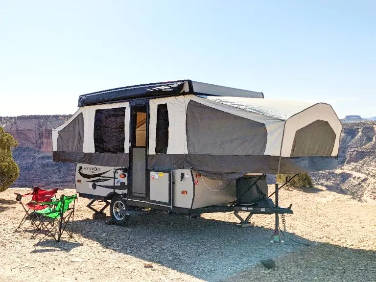 Plenty of space for late-night games is included inside this 2017 Rockwood Freedom Series folding pop-up camper by Forest River. A front booth dinette and rear u-shaped dinette allow lots of space for eating, playing, or sleeping.Front 48" x 80"and rear 60" x 80" tent end beds also offer comfy sleeping in addition to the 35" x 80" booth dinette and the 38" x 80" u-dinette. We added an extra layer memory foam mattress on each side!A cabinet for storage is just inside the door. You will find a swing galley along the roadside wall opposite the entry, including a three-burner range, single bowl sink, and optional refrigerator.Built in Propane Heater 20,000 BTUs