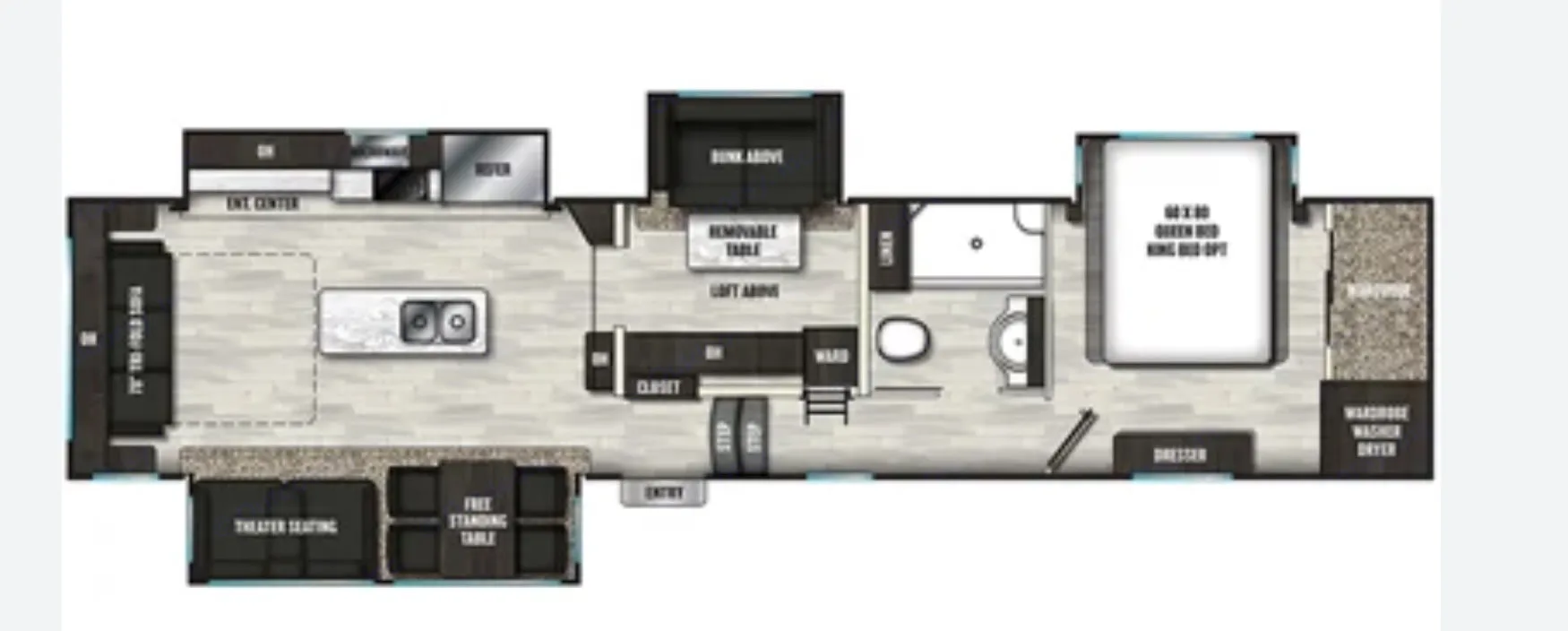 Forget packing extra; the onboard washer/dryer simplifies laundry on any long trip.