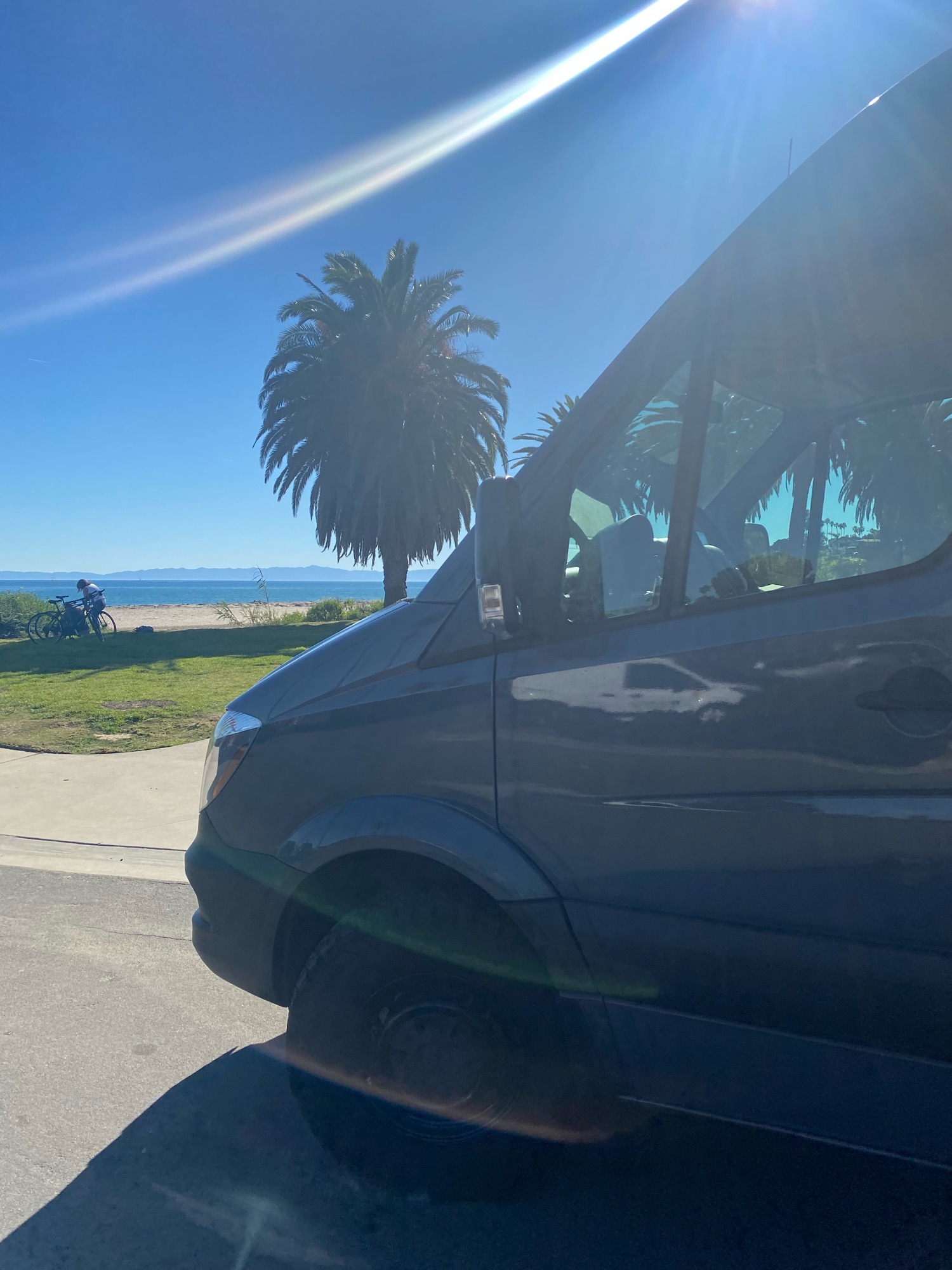 High roof Mercedes Sprinter van, with a fold down platform bed. Three person bench seat, two front passenger seats, and room for whatever you want in the rear. Watch a cool movie at the drive in, or the sunset at the beach, our van is ready for your adventure! Plenty of storage space under the bed when it is in use, and folds away when not in use.What's includedA large Yeti cooler on wheels, blankets, towels, a chargeable lantern, enamelware plates, camp stove (requires you to provide propane). RecommendationsPerfect van for camping!