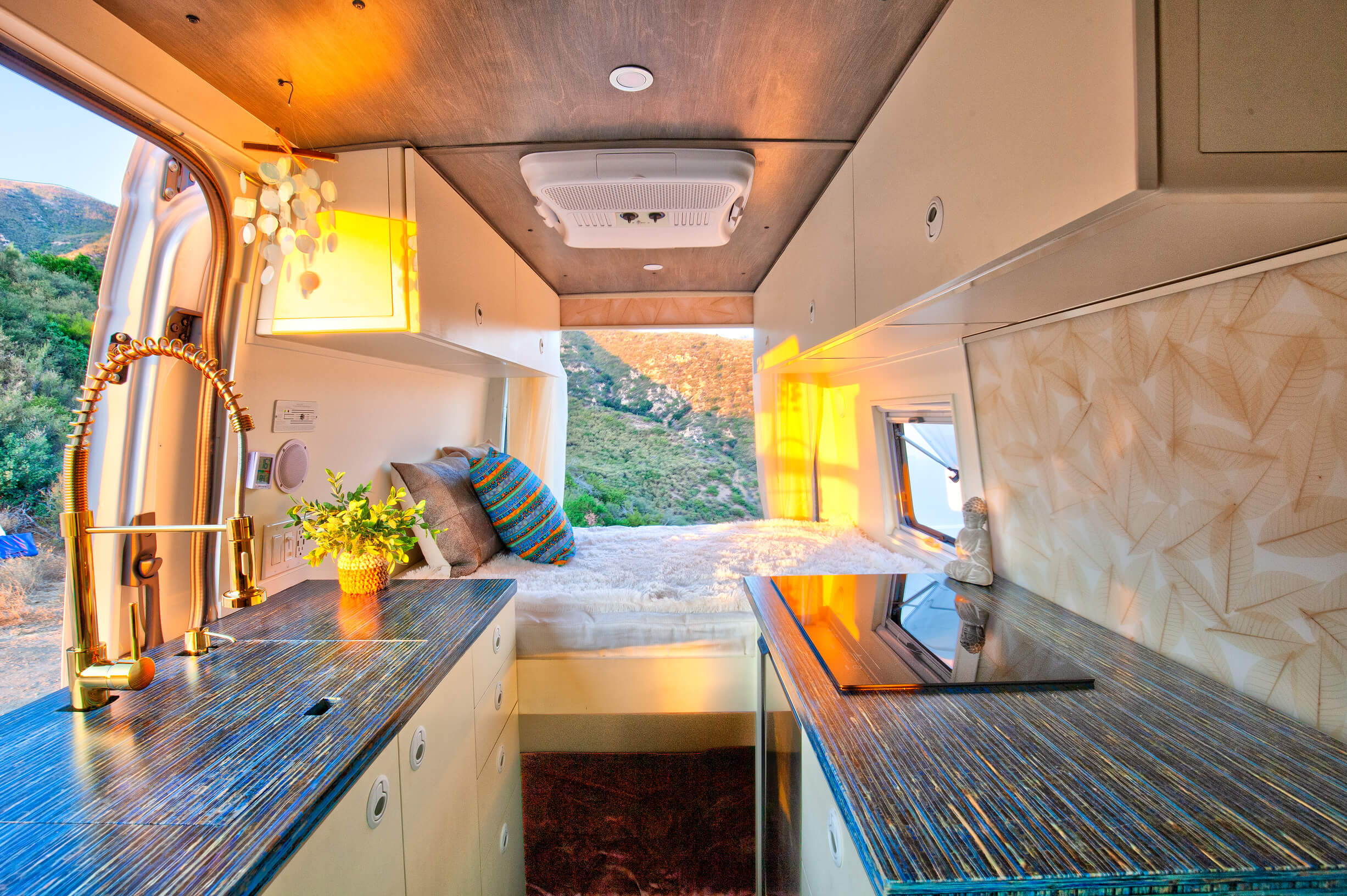 See a video and full description here:The "Tranquility" is a luxury camper van designed by Zen Den Tiny 'Om who is owned by an architect/interior designer. The interior was built with healthy materials and was converted from a Sprinter 2500 high roof 144 wheelbase cargo van. Please note that the full-size bed is short, only about 5-6" long. If there is only one person using the bed, a tall person can lay diagonally and be just fine, but if there are two people, they won’t be able to fully stretch out if they’re over 5’-6” tall. There is also a mattress under the main bed for a small child or dog! We are firm about the 6-day minimum rental time period. We offer a 50% discount on the nightly rate for rentals more than 30 days.What's includedA mobile wi-fi Verizon "Jetpack"Other things to noteThere is a toddler-sized car seat that is mounted with steel bolts to a steel bench mounted with steel bolts to the van; however, it faces sideways so is not compliant. You'll need to sign a waiver acknowledging this. We can also remove it if you prefer.