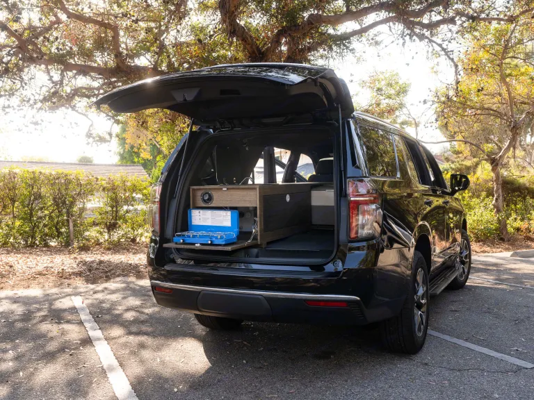 This brand new camper SUV includes a portable all-in-one camping unit with a fridge, a power bank so you can plug in various appliances, a camping toilet which can hold disposable bags so it’s low maintenance, a camping stove, and a sink with a water filter, fresh water tank and grey water tank. The mattress and 12 volt heated mattress pad are also included.