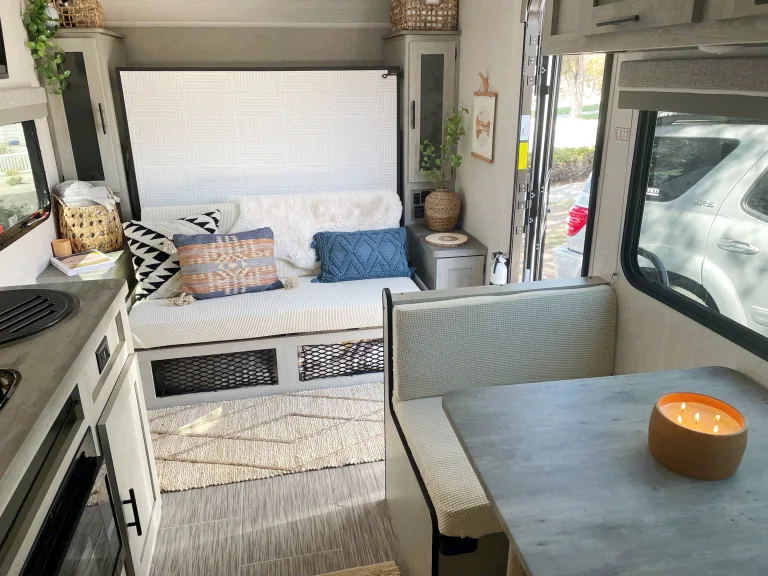 The Guest House is ideal for long term rentals when you’re doing a remodel or have family coming for an extended stay. Save 20% on 28 days or longer rentals.This boho chic camper is comfy and cozy with high end linens and brand new appliances. It is short enough to fit in your driveway (19 ft), but has a spacious layout inside. It comes with full/double mattress bunk beds with curtains for privacy, a queen sized murphy bed (that folds up for more space during the day)and a dinette that folds down into another twin bed.