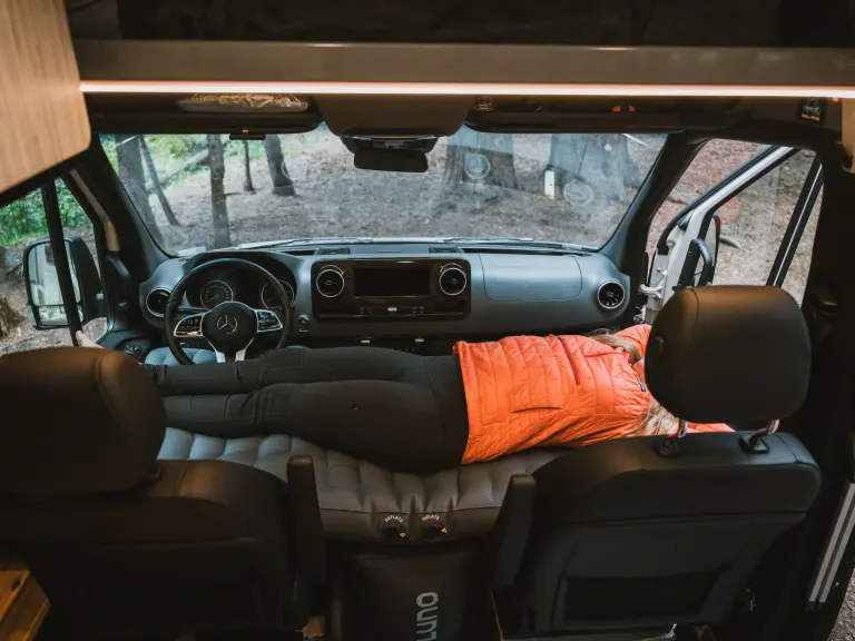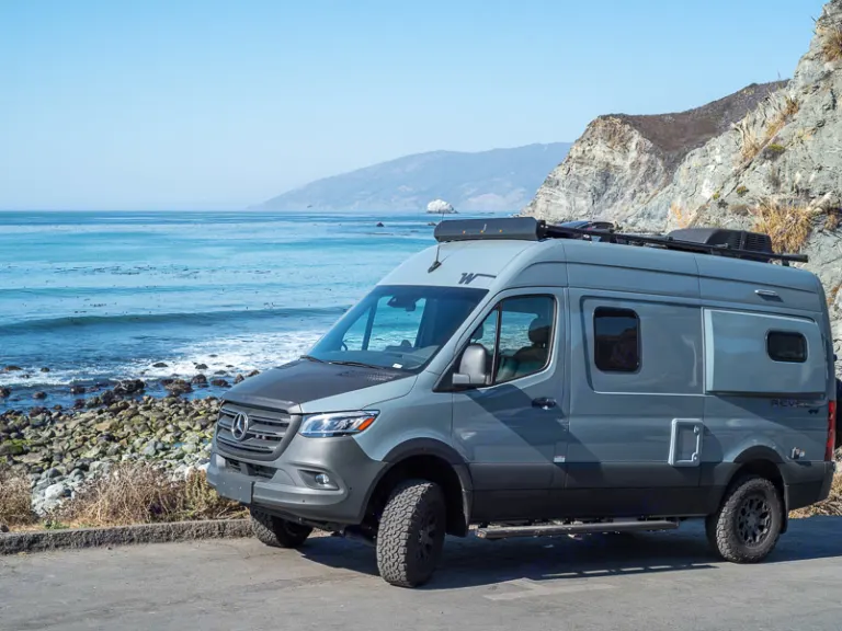 Brand-spankin’-new 2021 Winnebago with designer details. This easy to drive, gorgeous diesel van is ready to ride, built on the new 4x4 Mercedes-Benz Sprinter chassis! We've named her "Der Beast" :)The 2021 Revel was improved from the prior year with a completely new electrical power system leveraging huge lithium-ion batteries which reduce weight and increase power dramatically allows for use of 110v electronics and included appliances such as the induction range, breville oven, and nespresso espresso machine (all included in rental). The bed dimensions are 49 x 79 inches.The new power system allows for the built in refrigerator/freezer to be kept on at all times w/ no noticeable draw on voltage and is powerful enough to run the roof mounted AC system for up to 4 hours without even starting the engine.