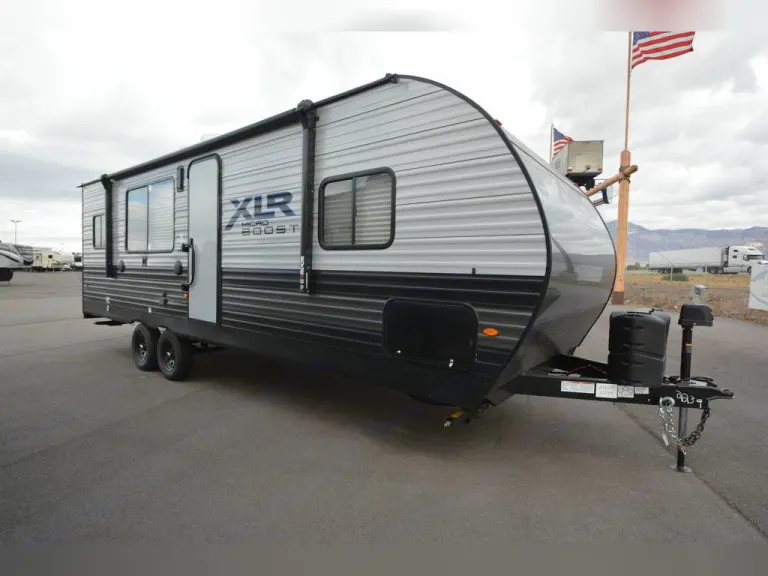 Our trailer is a brand new 2021 XLR micro boost. Featuring a private master bedroom, with a queen bed. Full dinning table that converts to a queen bed in seconds. 1 full bath, microwave, oven/stove, and full size RV fridge. Micro boost has an open floor plan with a deck opening up outside. You can fit all your outdoor toys in this 29ft toy hauler. This trailer has plenty of storage & is perfect for a small family or a couples get away trip. What's included- Non breakable dishes (People often prefer to bring their own paper goods)