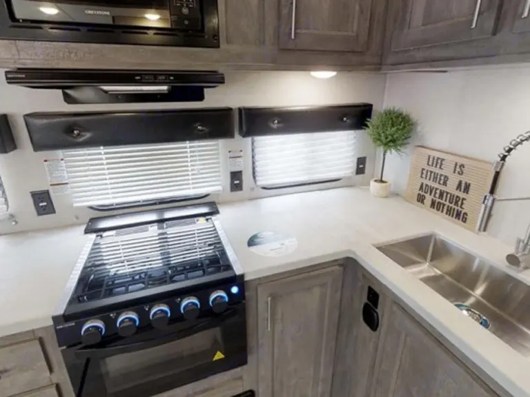 2021 large 5th wheel, 44ft toy hauler. Sleeps 8, with plenty of extra room. Large back patio, nice living area, private master bedroom, & 1 and a half bath. Equipped with a full kitchen & 2 slides to make it more roomy. Includes an electric fireplace and a generator. Our Toy hauler can fit bikes, 4 wheelers, and side by sides with plenty of extra room in our 16ft garage. (Delivery only)What's included- Generator 4 free hours a day, $3 an hour after that. Must be returned full of gas