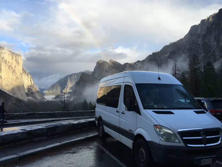 Enjoy camping on the coast or stay cozy in the mountains in our 2008 Dodge Sprinter. This is a family friendly vehicle with floor mounted double seat with anchors for booster or car seats. The double seat has a release and can be removed once you get to your final destination for additional cabin room. The van comes with a very comfortable queen size bed with storage above and below sleeping areas. The engine is a reliable Mercedes V6 Diesel and loaded up you will still average 20 MPG's. Rental include all camping essentials such as 2 burner camp stove, propane, pots, pans, utensils, kettle, coffee marker, table, chairs, outdoor rug and more.