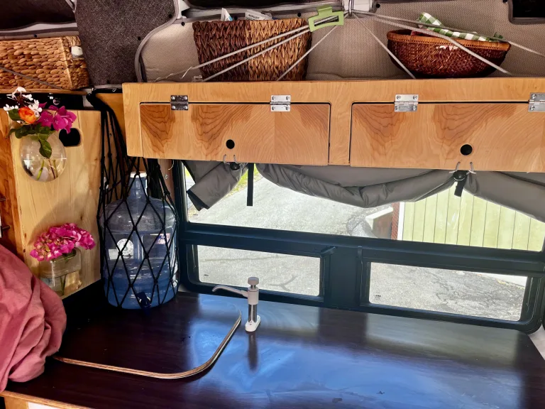 The van has both a 20L water dispenser for drinking water and tank water for washing up etc.