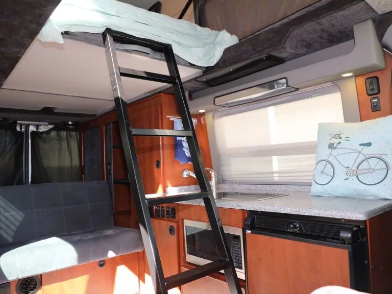 Consistently happy customers. Check our reviews!Sprinter Sportsmobile Camper Van with Penthouse Roof: sleeps 5. Full kitchen with sink, stove, microwave and fridge, full kitchen utensil set. All very clean and functional. Camper is set up to enjoy camping adventures throughout California and the west.Conveniently located in Santa Cruz county, easy drive to Big Sur or other scenic coastal destinations. We offer pick up and delivery to service your needs whether it is to your Bay Area home, airport, campground, or other locations.Features
