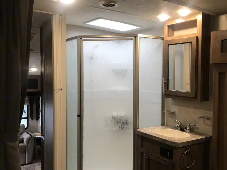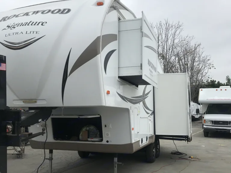 2016 Forest River Rockwood Short 5Th Wheel, Two Slide-Outs! Lite WeightSeamless windows, am/fm CD player and Bluetooth with outside speakers, electric rear and front stabilizer jacks, cable ready and satellite ready, , electric patio awning, with LED lightening, outside storage with slam latches, living room dinette slide-out, walk around queen bed, dual axel, bedroom wardrobe slide out, brand new refrigerator and freezer, cold ducted roof air conditioner, kitchen with lots of storage.Solid surface counter tops, pantry microwave and oven, sleeps four, outside shower, LCD TV, battery, solar ready, 30 amp service, DSI water heater, three burner cook top, dual entry step, two propane tanks, forced floor heat, glass stand up shower with skylight.Great small, lite weight Rockwood 5th wheel!!!