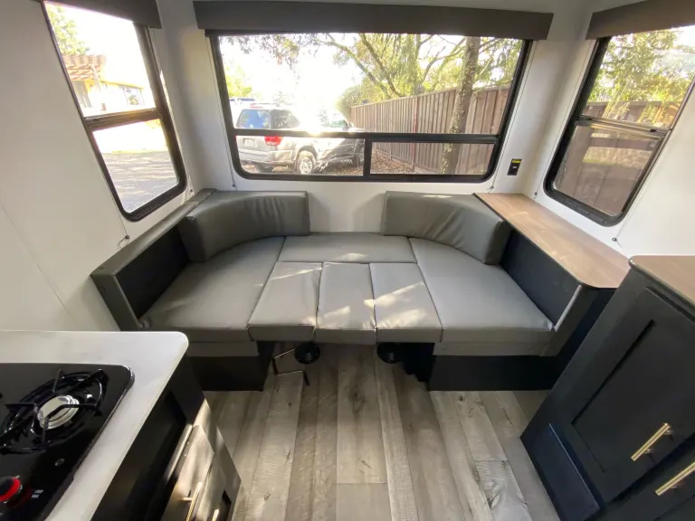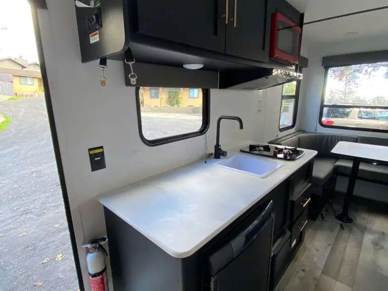 An amazing brand new 2022 17ft trailer ready to travel in any condition. It has the perfect panoramic view at the tail end to enjoy natures view and is ready to take off with everything you need for a quick getaway. It has a queen size bed with an extra twin size bed. For inquiries message me!What's includedFresh linen, camping chairs, hammock, cookware, TV, Bluetooth Speaker, Ask For WiFi! Cooler can be included if asked for.RecommendationsI’m a huge Big Sur Fan! There are many places that the trailer can easily fit so the options are endless. Travel the Highway 1 route and travel to Lake Tahoe for the snow season.Other things to noteThe fridge has a small amount of space, if you plan on a long trip I recommend a cooler with ice. It’s mainly for three people maximum, but four can fit at your discretion. I am mainly looking for couples with a plus one or a single person ready for travel. Cleanliness is paramount, it’s in new condition so I will notice any discrepancies. Other than that it’s pretty much your home when you use it!