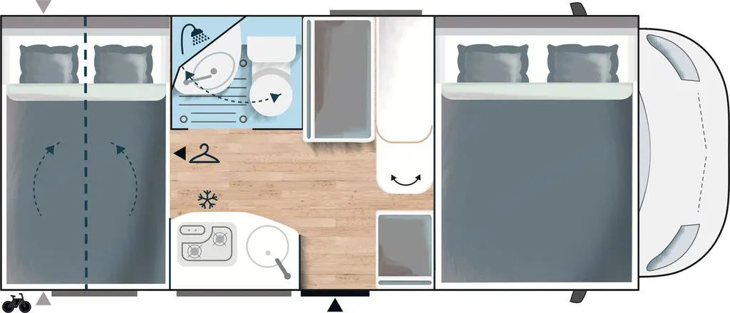 • Depósitos de 110 litros de agua limpia y 100 litros de aguas sucias.Cocina: