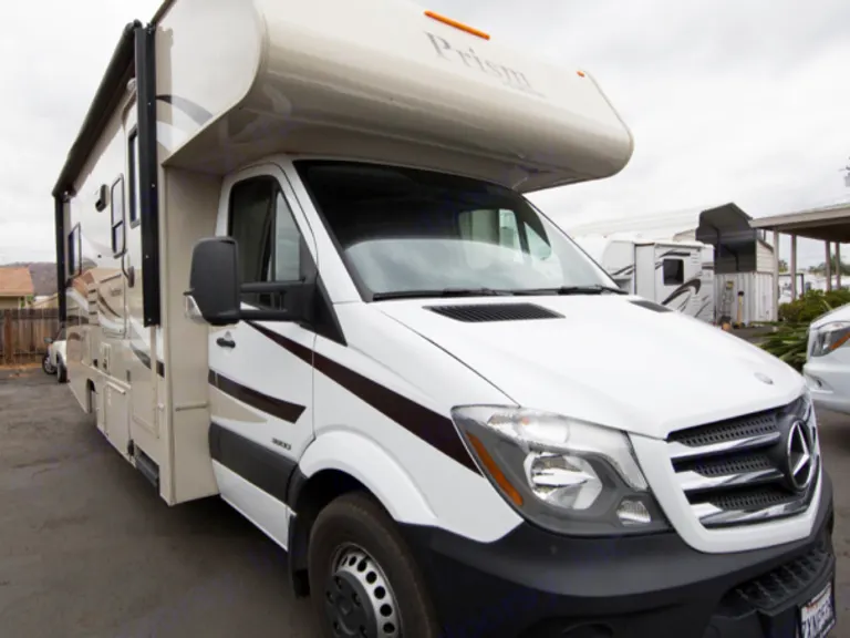 ● Mercedes Benz Sprinter Chassis ● Powered by 3.0L Blue Tec Turbo Diesel engine ● 6 seat belts ● Sleeps 4 adults and 2 kids ●► This high MPG, high luxury, easy to drive 25 foot RV offers a spacious and open floor plan on the Sprinter Chassis category. Up to six people can enjoy this very comfortable living area with its full entertainment system and fully-equipped kitchen. The corner bed, the large convertible dinette and the over-cab bed each sleep two. Additional features of this very popular RV include expansive interior and exterior storage, solar options, swivel cockpit seats, an outdoor shower and more.Nightly Rates