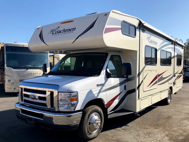 ● Ford V10 E-450 Chassis ● 8 seat belts. ● Sleeps up to 8 adults ●Brand new 2019 29ft Coachmen 28BH motorhome with sleeping for up 8. Rear bed slide out creates queen bed comfort and even larger living room slide out turns family room into the perfect open floor plan for larger travel groups or just those who want more space on a chassis under 30ft. Family room EuroLoft Bunk Beds add to this adventurous RV. Tons of added extras make this a great family getaway RV. You no longer have to rent 32ft or larger to get bunk beds and large roomy space! The best floor plan for larger families or those who just want more room. Built on the reliable Ford E-450 chassis. Model Year 2019. Seatbelts for 8.Nightly Rates