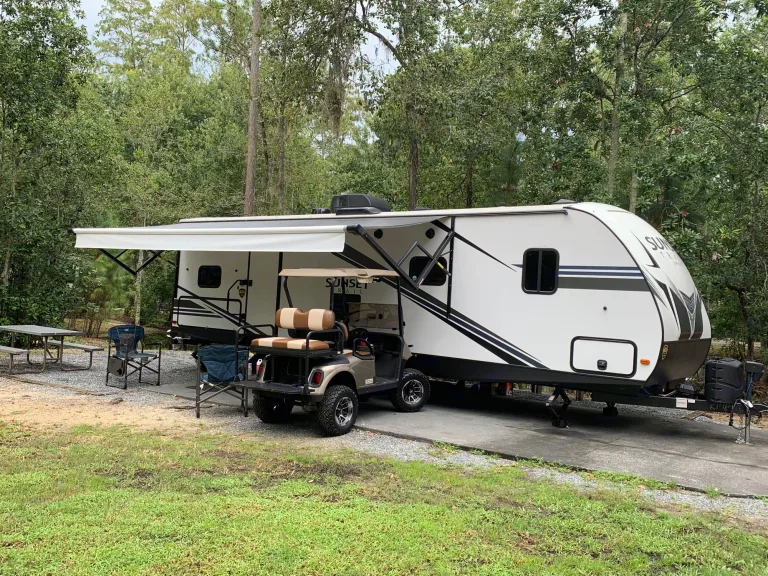33’ Sunset Trail Travel Trailer. 30 amp. Like New! Clean! We deliver to sight. Fully equipped with king size bed, 2 full size bunks and full size pullout couch.; table also converts to bed. Ready for families or just couples with all the comforts of home. Air conditioning, refrigerator, oven, stove, microwave, outdoor grill and outdoor refrigerator and plenty of storage for your outdoor adventures.What's includedDishes and silverware, pots and pans and cooking utensils, fresh linens, towels, dish soap, RV Toilet paper
