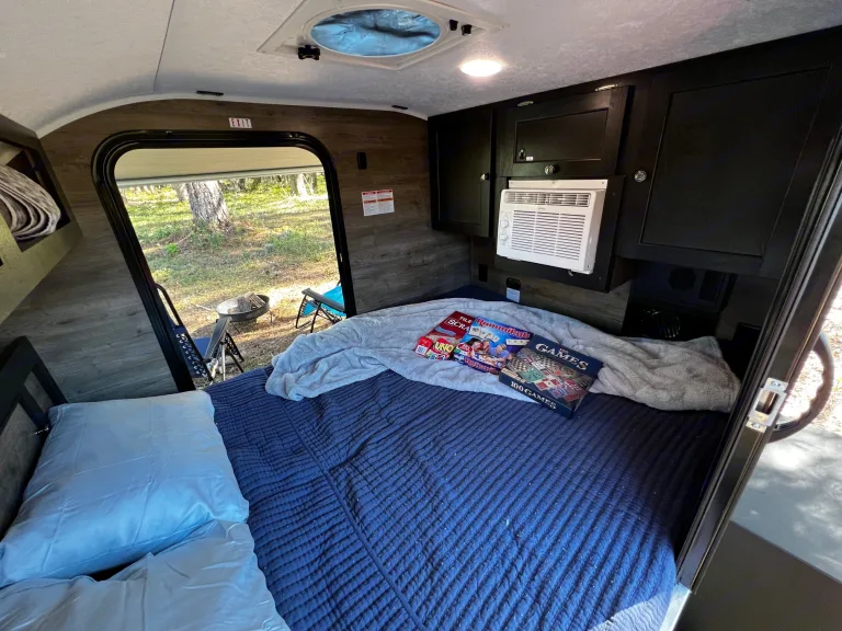 9AM-3PM returns*Please let us know BEFORE you leave/arrive what specific time you will be arriving/returning within the times listed below. **Earlier arrivals and later pickup times MUST be requested ahead of time and may/may not be accommodated.$20.00 Prep feeMust connect to 30AMP service for A/C to function.*Renter is responsible for campground reservation.*Renter is responsible for verifying that their vehicle can safely haul the trailer