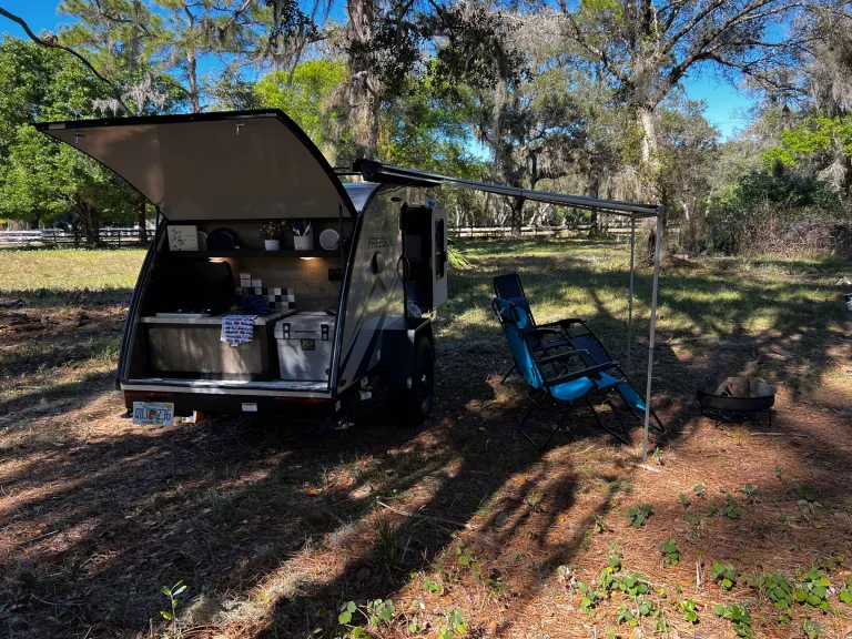 Meet Sproodle Jr! This is a brand new 2021 Braxton Creek Free Solo OGThis teardrop trailer includes a clamshell kitchen in the rear, queen size bed (57"x77") for two adults and your fluffy companion (**no pet fee!** as we love animals), 5000BTU A/C, 12000 BTU propane fed furnace, Bluetooth stereo for all your music, 10gal freshwater tank, 6.5ft awning, access doors on each side of the teardrop, and all terrain tires to make sure you get to where your going!Delivery available, check before booking for schedule and rates. Near: Sarasota, FL / Bradenton, FlWhat's includedSproodle Jr includes: