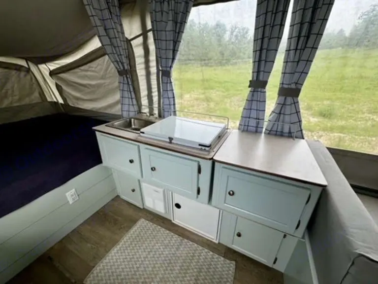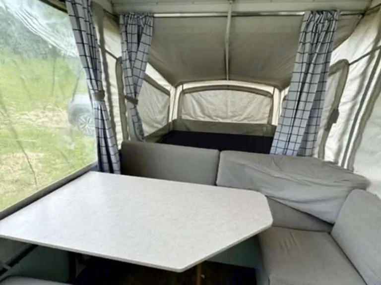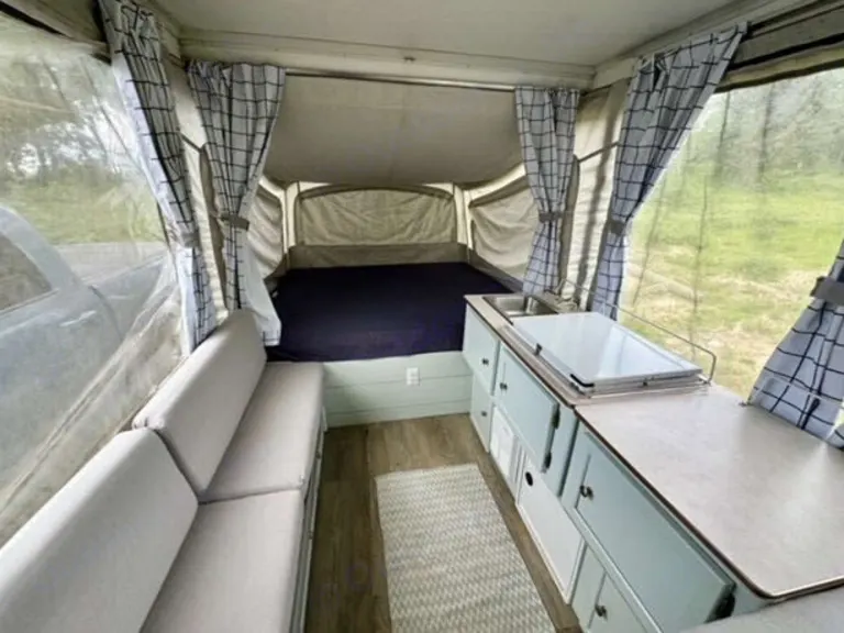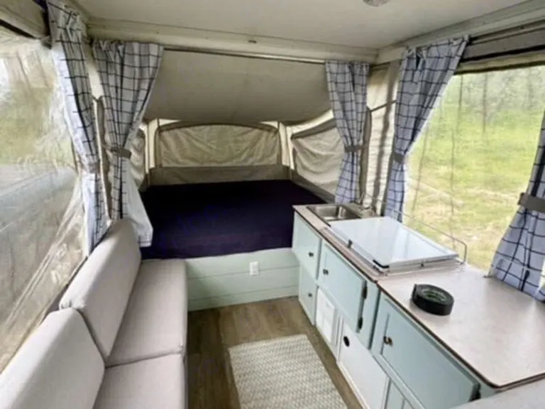 Nice remodeled pop up tent trailer. Perfect for your Fall getaway! Two pull out beds and two convertible beds (table converts to a bed & there is a pull out twin bed); sleeps up to 6 adults comfortably.
