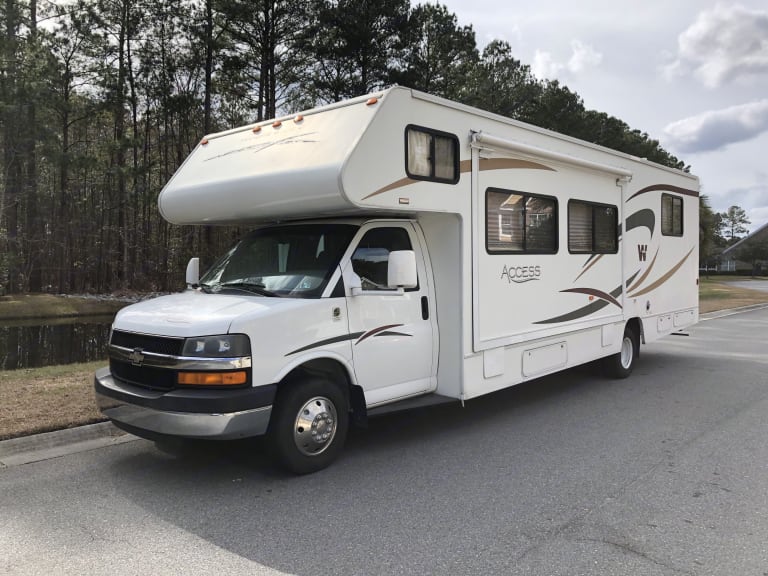 "Betsy" is a perfect size for couples as well as family outings. She is 31 feet long and is both easy to drive as well as easy to set up. Inside there is a sofa, dinette area, master bedroom with queen bed as well as a bunk above the cab. Other features include 16' awning, shower separate from bathroom, 16' slideout, roof mounted AC unit, flat screen TV in living area as well as the master suite. There is plenty of storage inside as well as outside the coach. Have a 2 wheeled tow dolly as well if needed. Rental comes fully stocked with linens, dishes, utensils, cookware, and table top outdoor grill. All you need to bring is food, toiletries, clothing.