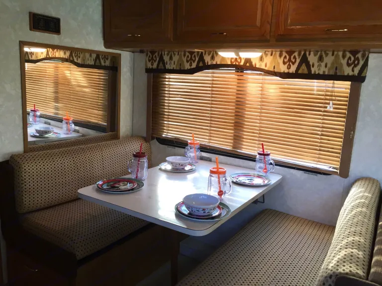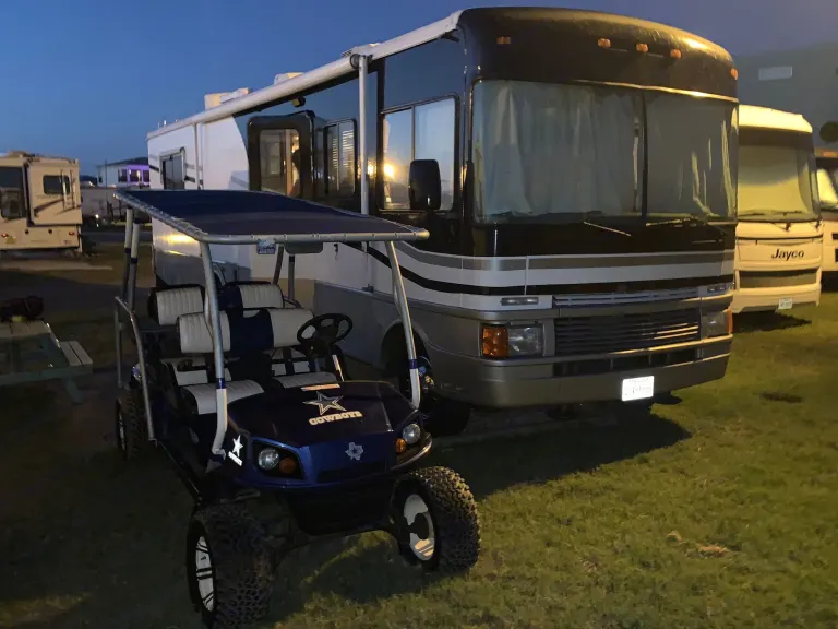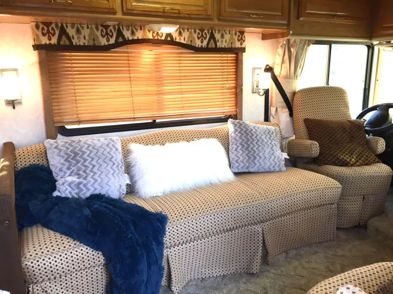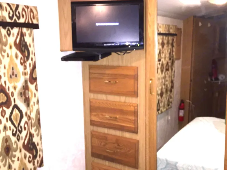 Our 1999 Fleetwood Bounder 34 ft. Class A motorhome is perfect for small and large families as it has sleeping space for 6 persons. It has a queen bedroom with lots of storage, a living room/kitchen with dining table (that converts to sleeping space), refrigerator, freezer, and lots of cabinet space. It also has 40" Smart TV/DVD in the main cabin as well as a smaller TV and DVD player in the bedroom, microwave, stove top, and oven. Full bathroom with tub and shower. The living room sofa also turns into queen size bed.