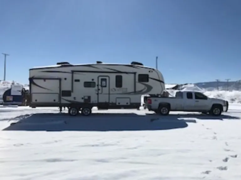 It's huge! Has 2 AC units and sleeps 8 people with two separate bedrooms. The 5th wheel also comes with an amazing grill and outdoor kitchen along with all outdoor furniture. Full size queen, memory foam mattress in master bedroom. Set up for wifi with WifiRanger EliteAC Pack FM (top of the line!). It's a smart trailer, so there no manual slide outs, leveling or lighting. Everything is controled by a touchpad and makes hooking up a breeze!$500 deposit required upon booking.