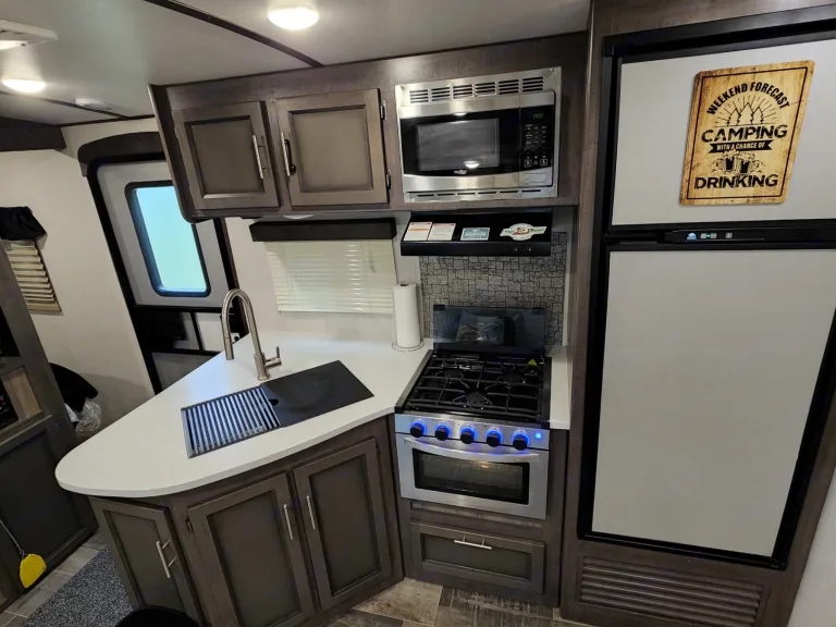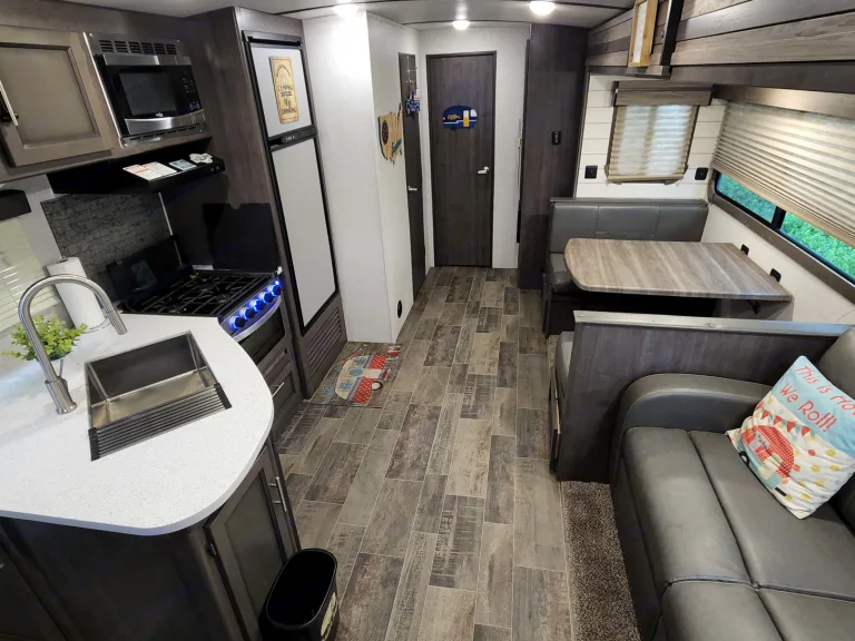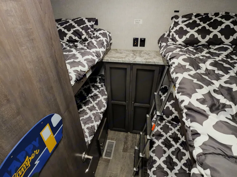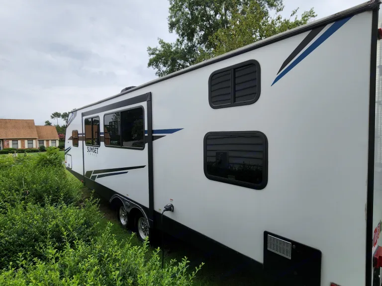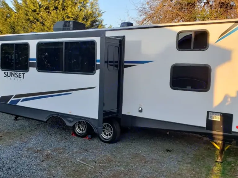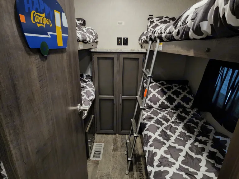 @Max Your Journey!. We have 2 units just ask. Comes ready to camp just bring your own food and bedding(Available if selected) . Has a King size master bed that's glamping. Sleeps 10, 8 comfortable and is a super lite trailer. 6000 dry weight. Pet friendly with a small fee. Also must have my tanks empty when returned. The bunk house has 4 bunks (3 Full size) , 1 that converts from dinette to a bed. Sofa Converts into a tri fold bed as well(2). Two great flat screens that make the roku stick look perfect relax watch Netflix and chill. Delivery is available. $300 flat rate includes set up and pick up to 70 miles. Come on now you wont have to break a sweat just the seal on a cold one, ill have the AC already on for you. Grey tank indicator must read empty upon return $75+ fee. Camper includes big outdoor rug, hitch, chairs if needed, folding table, toilet paper, some cups and paper plates, basic seasonings, propane, roku ,cable hook up capable, some cleaning supplies, . Plus plenty other extras. Only Delivery NO Towing. Questions please ask.