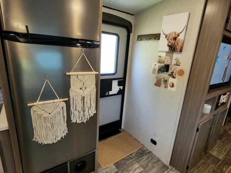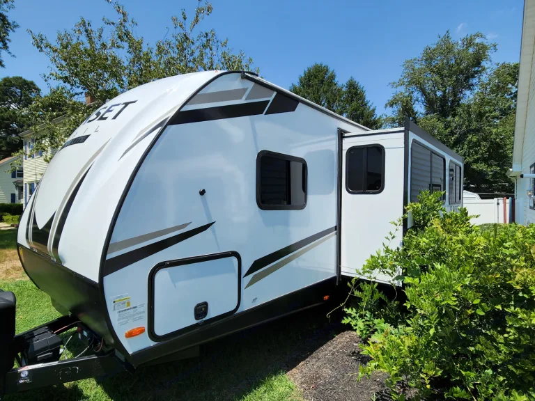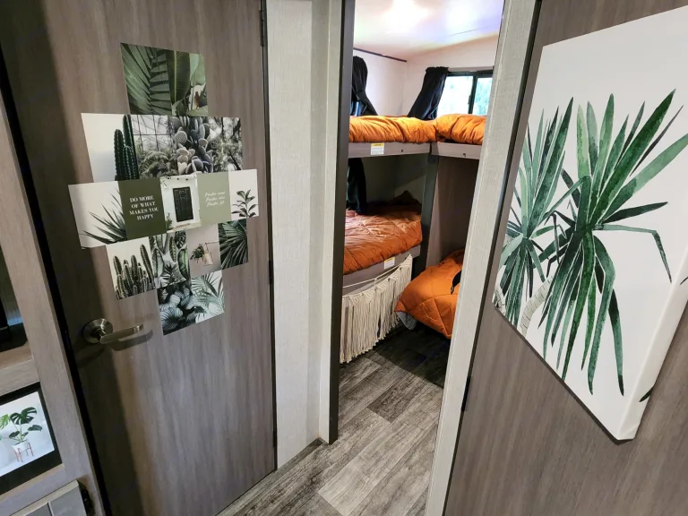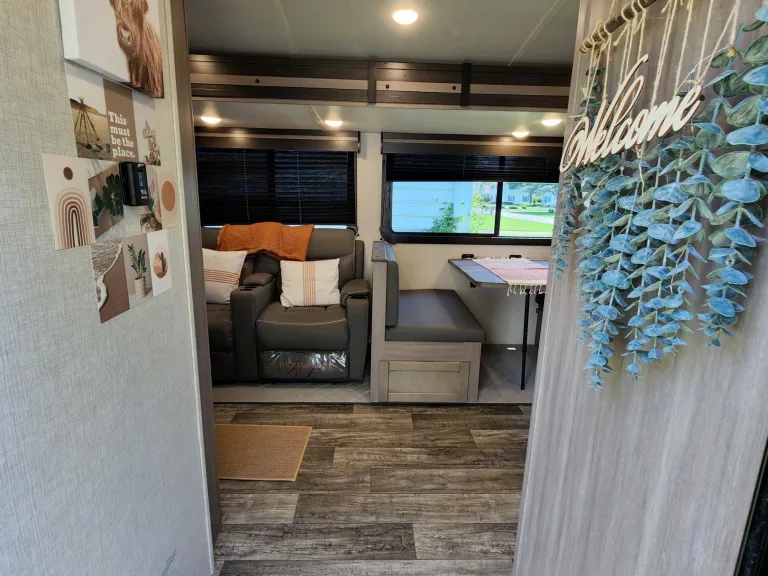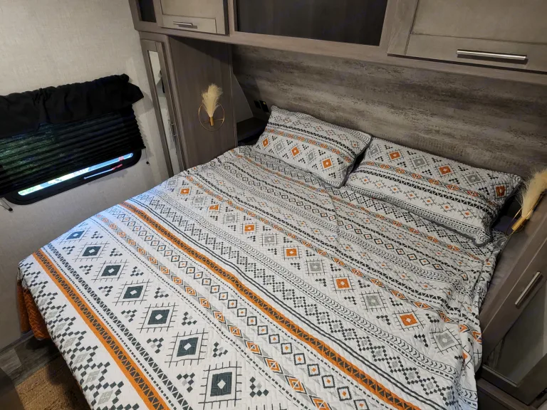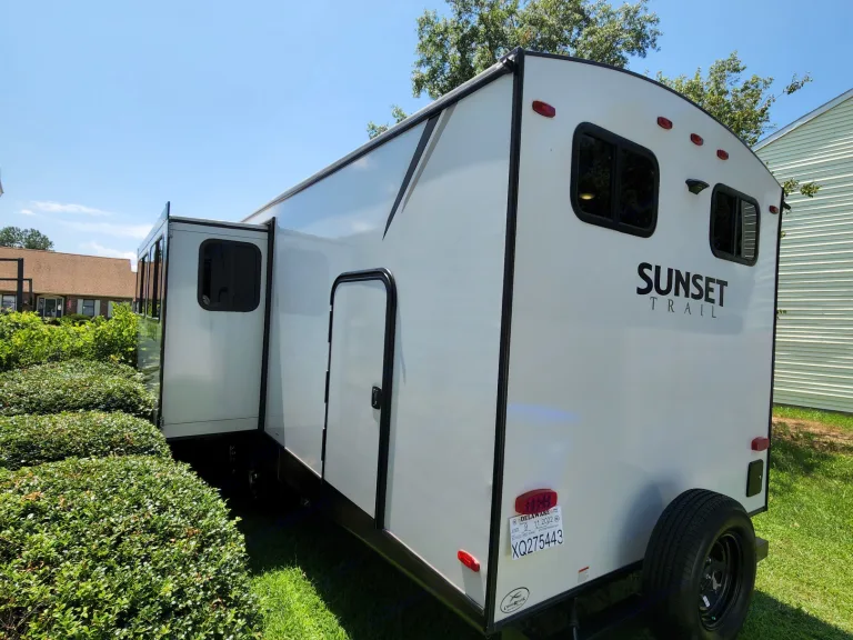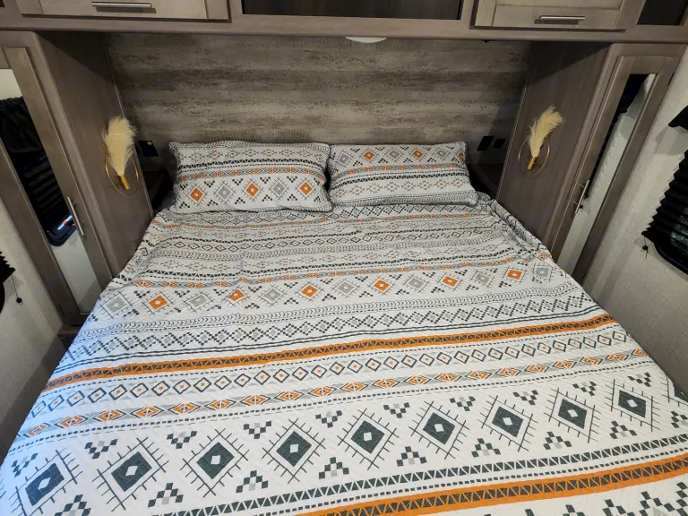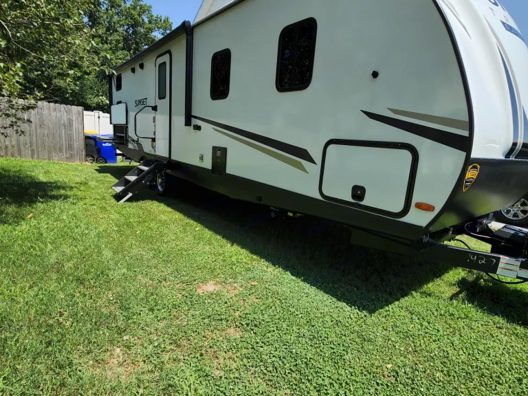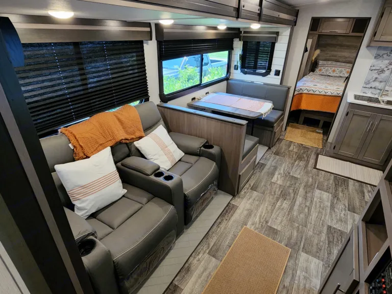 @Max Your Journey!.WE Have 2 Units Just ASK. Comes ready to camp just bring your own food and bedding(Available if selected) . Has a King size master bed that's glamping. Sleeps 9, 7 comfortable and is a super lite trailer. 6230 dry weight. Pet friendly with a small fee will lose deposit if pet damage or pet is in rv with out approval. Also must have my tanks empty when returned. The bunk house has 4 bunks (3 Twin XL) , 1 Jack Knife sofa that converts to a bed. One flat screen. Delivery is available. $300 flat rate includes set up and pick up to 70 miles. Come on now you wont have to break a sweat just the seal on a cold one, ill have the AC already on for you. Grey tank indicator must read empty upon return $80+ fee. Camper includes big outdoor rug, chairs if needed, folding table, toilet paper, some cups and paper plates, basic seasonings, propane ,cable hook up capable, some cleaning supplies, . Plus plenty other extras. Only Delivery NO Towing. Questions please ask. Generator is also available for a small fee very helpful when camping at no hook up sites, and its a super quiet model.