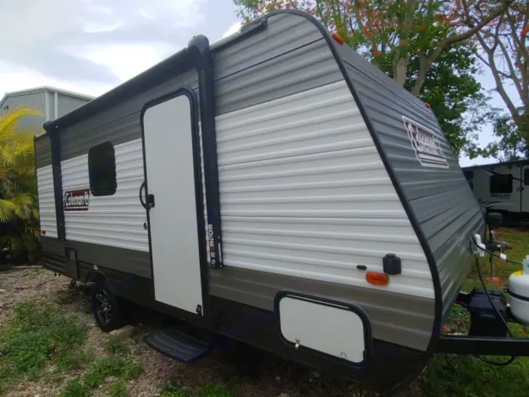 • 7 pin connectorThis Coleman has one queen bed and a dinette that can convert into another bed. And a pair of bunks in the rear.