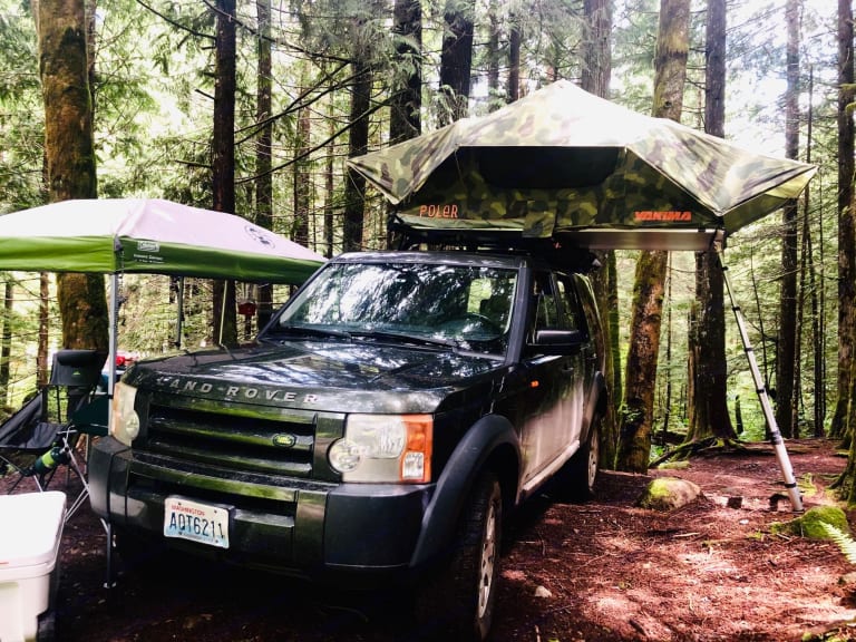 Just pack your food! Head out on an adventure in this go anywhere Land Rover with a three person Yakima roof top tent. This setup allows you to camp in places that many trailers can’t. Get off the grid, explore the unknown, and create wonderful memories in this all-inclusive camping setup. The rooftop tent is capable of sleeping three people and is roomy for two.