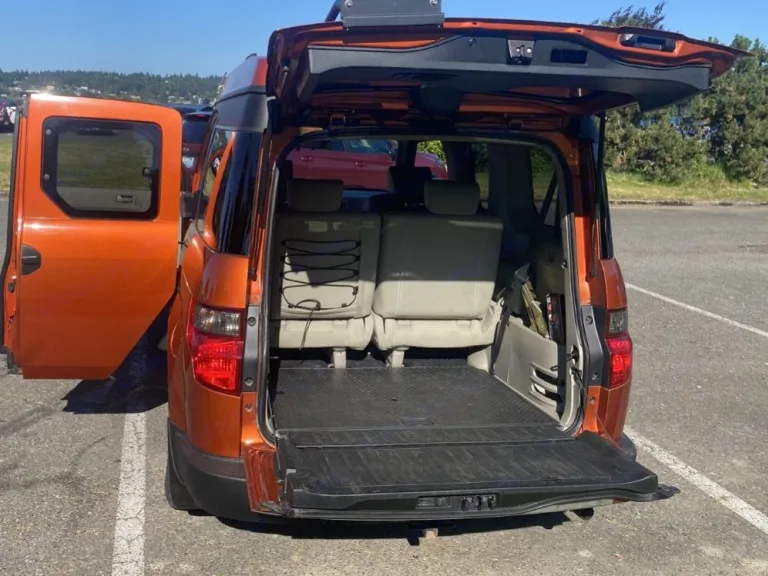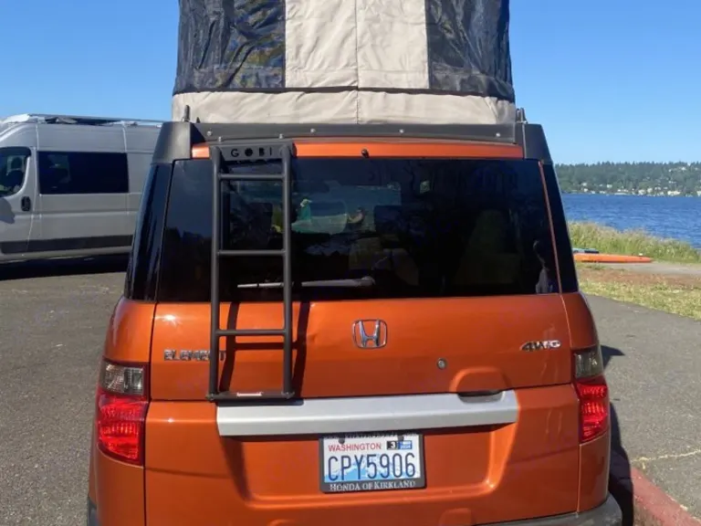 Our Honda Element has a pop top tent with an exterior ladder that easily transforms into a cozy camping setup for two people. The rear seats can be folded down or removed entirely, providing flexibility for transporting gear or creating an additional sleeping area. Orange Crush is kept clean, has a brand new stereo and all-wheel drive.What's included• Charging cords