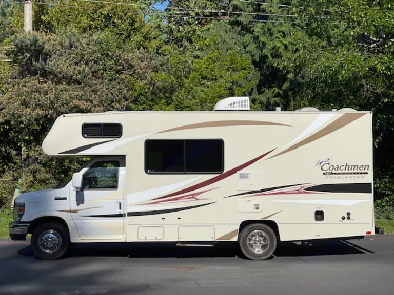 This is a very clean, family friendly and easy to drive 4 season coach. The RV has never been smoked in and has been well maintained. Tons of storage space! Pet friendly.What's includedThe queen mattress has been upgraded to a thicker Tempur-pedic mattress. In addition to the queen, the dinette turns into a small bed which could accommodate one adult or 2 small children, and the upper bunk would also fit one adult or 2 children comfortably. We ask guests to bring their own bedding and towels.Interior: The kitchen is stocked with usual items for cooking, serving, and eating meals.Exterior: carpet/matt, folding table, camping chairs, small propane grill. We can provide extra gear, if we have it, at no extra charge if you are from out of town.If you have a well-behaved dog, they are welcome in our RV (just let us know). We do charge a small pet fee to cover the extra cleaning required so it remains as clean as possible for renters traveling without furry friends.We disinfect following Outdoorsy & CDC guidelines.The coach is overall 23.5', width 8.33', heigth 10.83'. Ford E350 Triton V10Interior amenities: