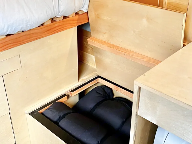 Built in pullout bed that can be extended for a few extra feet of legroom for tall travelers