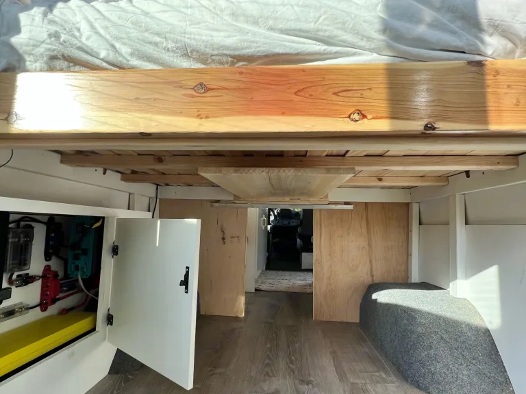 Under seating storage and garage space under bed.Kitchen sink with water pump, pull out table for dining, Skylight, extra sliding bedroom window gives more light, air and views.Passenger seat Swivels around. Seats 5 inside