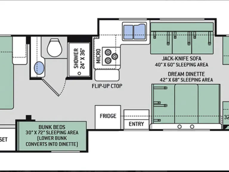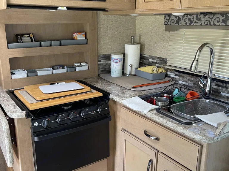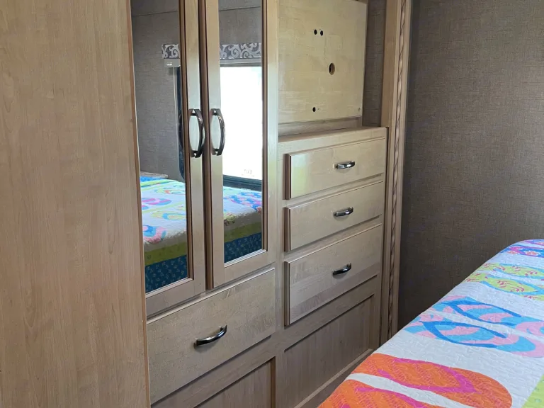 This 2018 Class C sleeps 7 with a full size bathroom. 2 slides offer spacious living and sleeping areas. This home away from home is furnished and ready for your adventure. Lots of space for you and your travelers offering a queen bed in located in the back with privacy door. Hanging closet and drawers offer lots of storage. There is a queen bed above the cab, a pull out couch and convertible dinette. This rolling home is stocked with all you will need for your road trip. Want to hang close to the RV? interior T.V. and radio. Awning and outdoor speakers for a relaxing day.What's includedFully stocked with bedroom and kitchen essentials. Bring your personal belongings, food and beverages and enjoy your trip. RecommendationsThis RV has seen a lot of travel. Stay local or see a new state. This rig is easy to drive, park and set up!!! Other things to noteDogs are permitted with an extra cleaning fee. Absolutely NO smoking in the RV!!! NO festivals or tailgating.