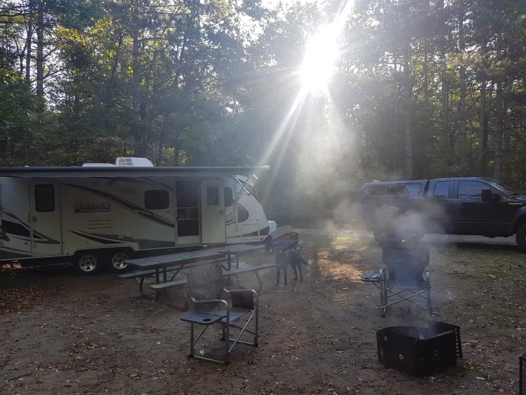 Travel trailer with slide out. Has triple bunk and queen bed. Great for family camping.