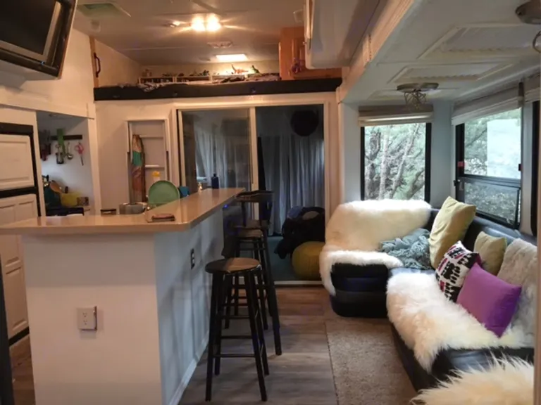Perfectly spacious for a couple or enough space for a large family. Tons of fun no matter what. Great sound system with DVD player. Full amenities like large shower, two refrigerators, stove, oven and two AC units. Take your toys or use the garage as more sleeping with air bed. Very comfortable queen bed in master and overall this rig is very cozy to stay in long term. We did it for a year!!! Enjoy the RV life in our trailer and book your next vacation. Can deliver within 50 miles for a minimum of 3 nights stay.What's includedCamp Chairs, gas fire pit, fresh linens (sheets, towels, face cloths), silverware, plates and pots and pans.RecommendationsVerde Ranch, Distant Drums, Rio Verde, Rio de Sedona, and Lolomai if available.