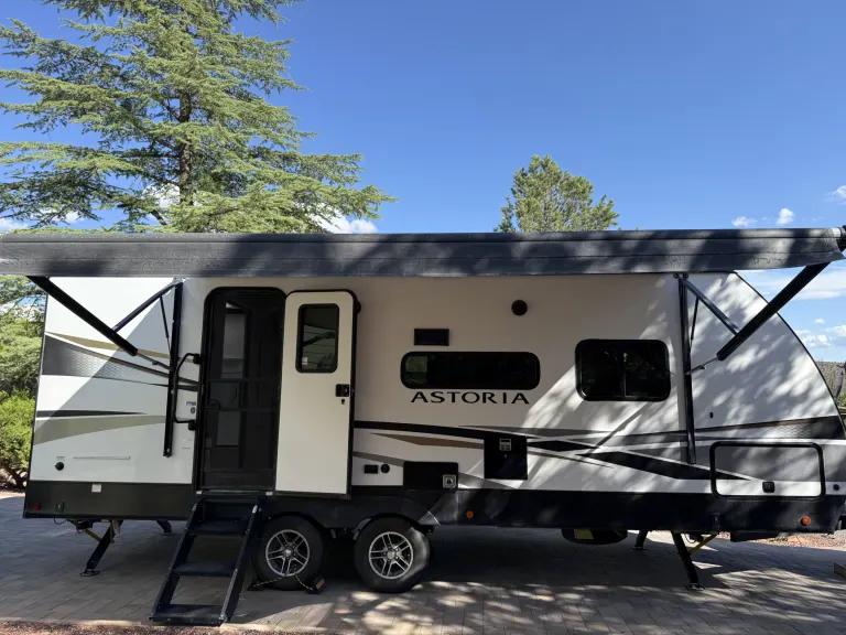 Discover the beauty of Sedona and Northern Arizona in style with this modern, fully equipped 2022 Dutchmen Astoria. Designed for comfort and adventure, it’s your perfect home-on-wheels for exploring red rock country, the pines of Flagstaff, or the peaceful lakes of Prescott.Step inside to a bright, inviting space with a private king bedroom, spacious bathroom, and fully stocked kitchen featuring a farmhouse sink, gas stove, and coffee bar. Relax in the cozy living area with dual recliners, fireplace, and a smart TV — the ideal retreat after a day of hiking or sightseeing.Enjoy morning coffee with a view of Cathedral Rock or unwind beneath a sky full of stars. With easy towing, climate control, and plenty of storage for your adventure gear, the Astoria is ready for wherever your Arizona journey takes you.Whether it’s a romantic getaway, a family trip, or a peaceful desert retreat — this luxury trailer offers all the comfort of home surrounded by the breathtaking landscapes of AZ!