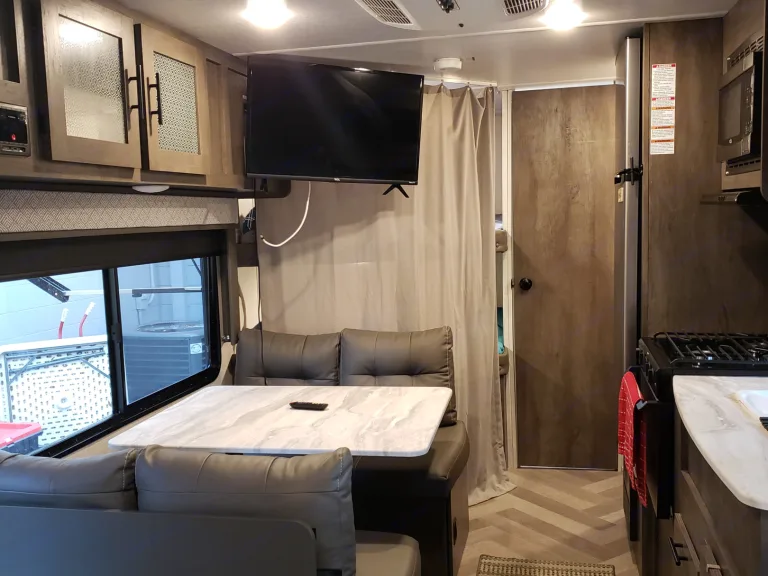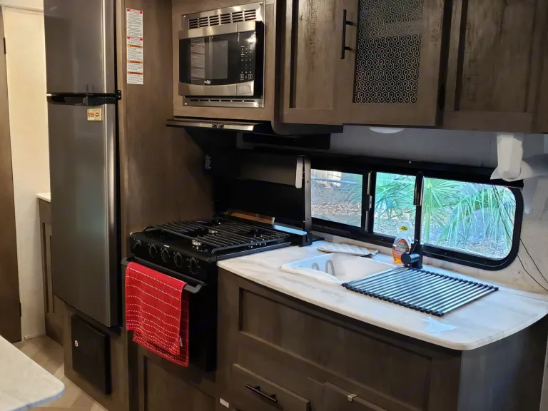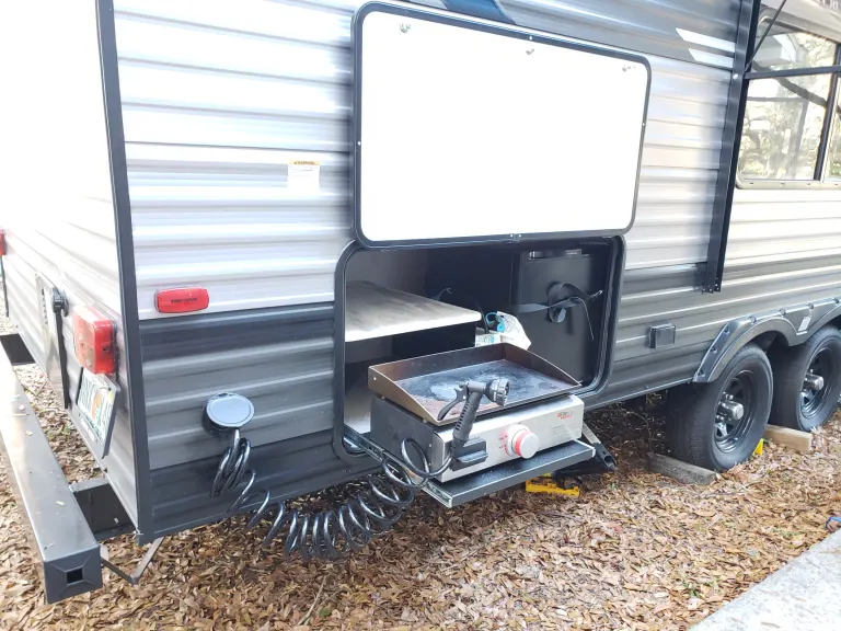 Owners were helpful and gave a thorough introduction to the RV . Loved the outside griddle!- plenty of room for stuff if you pack in bins ( which I do).. big frig and freezer… everything worked well- had a great time camping!