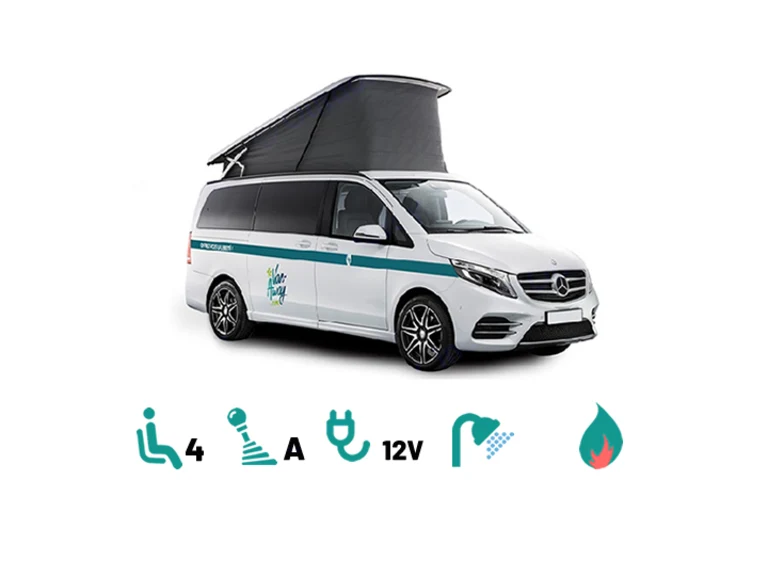 Conçu pour accueillir jusqu'à 4 personnes, le Mercedes Marco Polo propose un peu plus de place que son cousin le California. Son look inimitable fera tourner les têtes sur votre passage !
