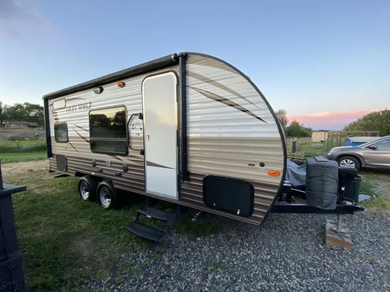 This beautiful trailer is equipped with all the essentials. Refrigerator, range, automatic retractable awning with LED lights, smart TV, Shampoo/conditioner, hairdryer, Keurig, coffee, cocoa, tea, soaps, portable generator. You will love being in this home away from home.