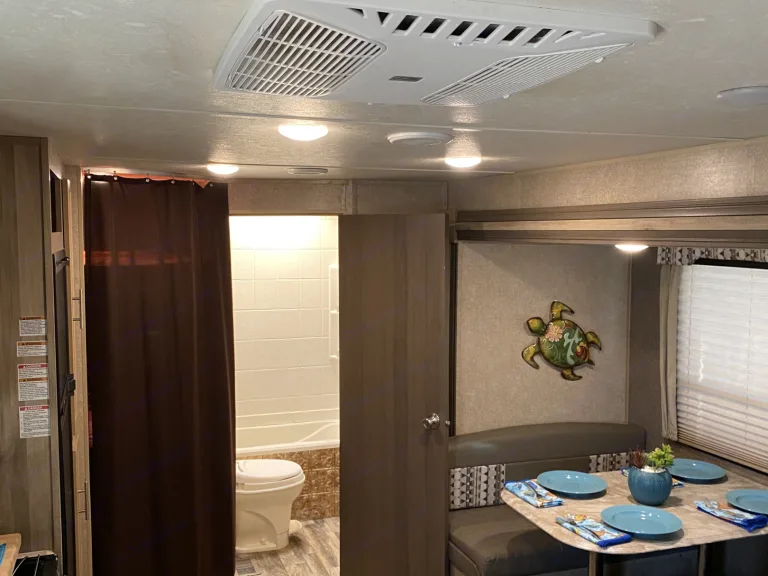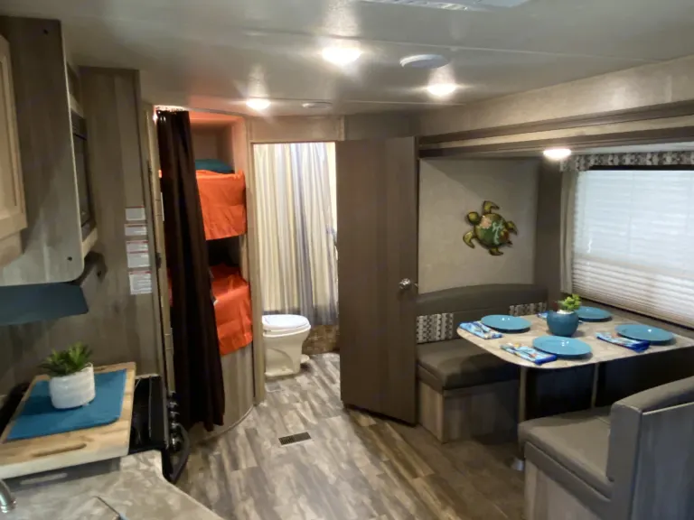 Spacious & Comfortable: With room to sleep up to 6 people, our 30' Coachman Catalina ensures that everyone can have a cozy and restful night's sleep. The bunk beds are perfect for kids or friends traveling together, making it an ideal choice for families or groups.