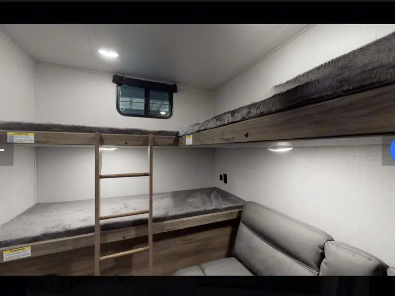 Super nice 30amp bumper pull with slide out, featuring a horseshoe dining booth, full sized fridge & a full sized coffee pot. Private master bedroom with queen bed and a back private bunk room perfect for kids with 3 sleeper bunks & a loveseat as well as its own TV! This unit has an outdoor kitchen with a wash station included. An electric awning with outdoor speakers to enjoy your music as you watch the sunset! This camper comes with clean linens for all beds, towels, dishes and two outdoor chairs & an outdoor table for your convenience. - Also comes with wifi! Pack your bags & pick your destination!What's included• Full sized coffee pot w/ coffee, sugar, Splenda & creamer