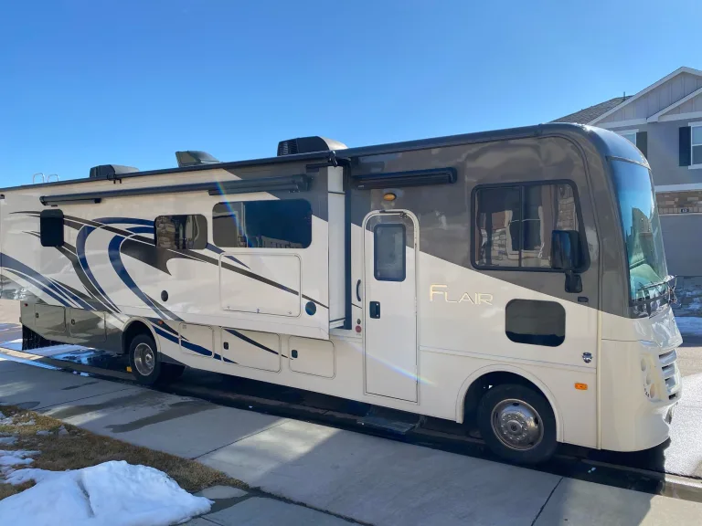 New 2020 Fleetwood Flair 35R. Fully equipped and ready for your next adventure. Sleeps 8. King sized master bed with door and tv, separate AC and lots of closet space. Full sized drop-down bed over cab, fold-out sofa, convertible dinette and 2 recliners. Opposing slides make for huge living space. Residential fridge, microwave, 3 burner gas stove/oven and large pantry area. Two tv's in the living area and one exterior tv that is great for outdoor entertainment.