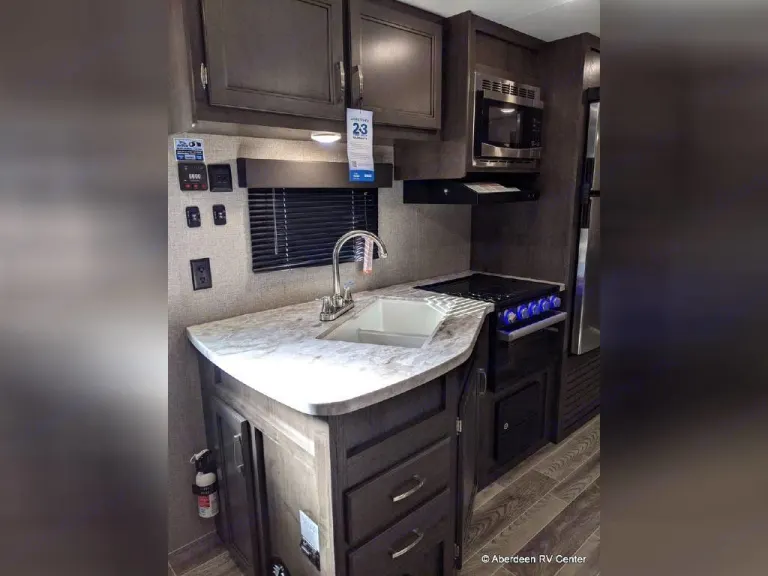 Love to cook? This RV includes a nice size kitchen with a good amount of counter place.