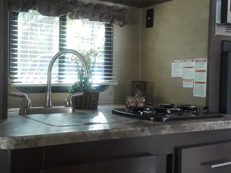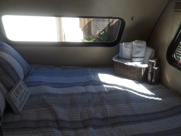 Clean and sanitized bedding included for Queen plus 4 pillowsKitchen slide out has very Cold Fridge/ Freezer Microwave/Convection Oven 2 Burner Stove Sink